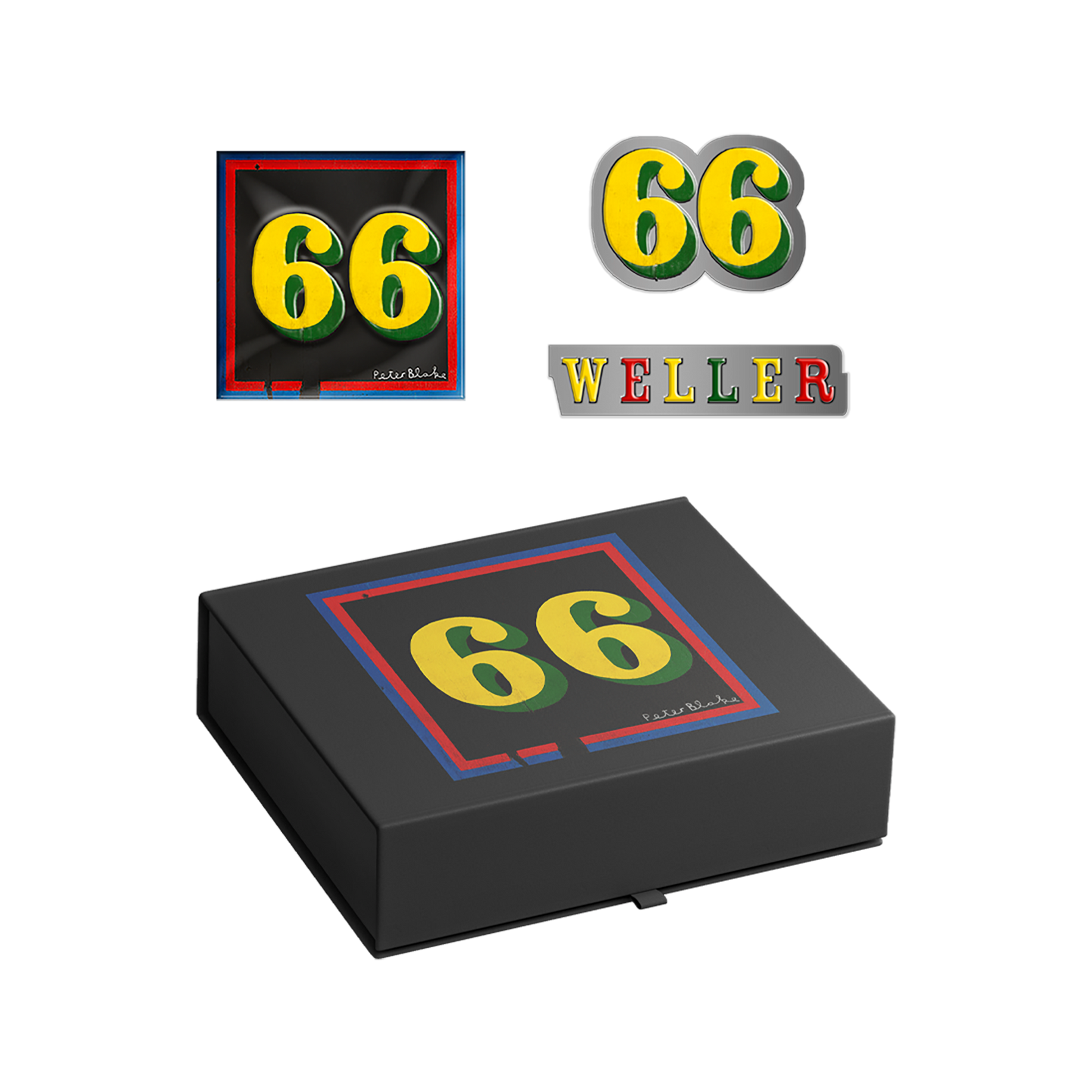 Paul Weller 66 enamel pin badge set. Set includes 3 pins and box.